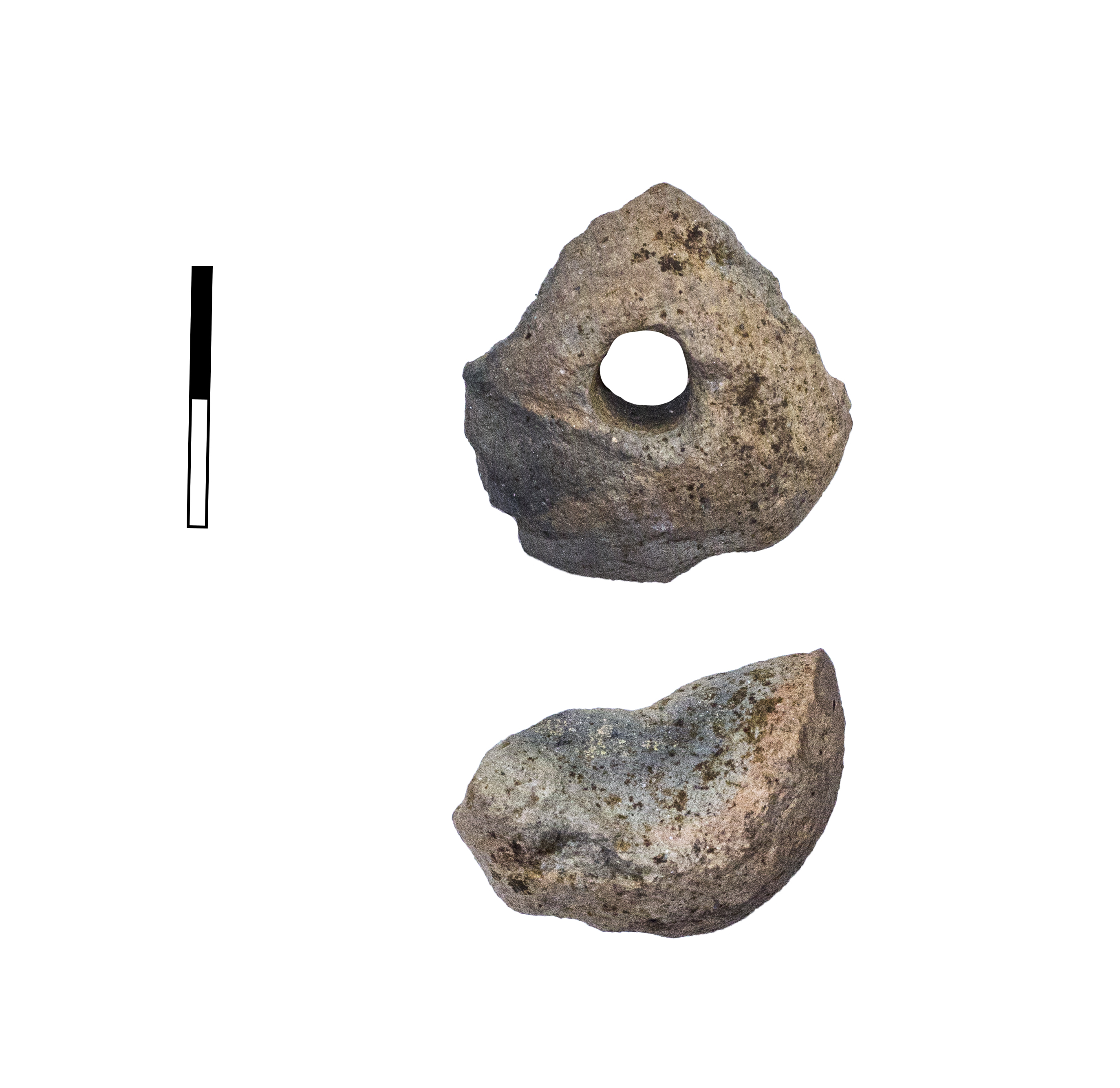 Фрагмент керамического грузила шаровидной формы от рыболовной сети.