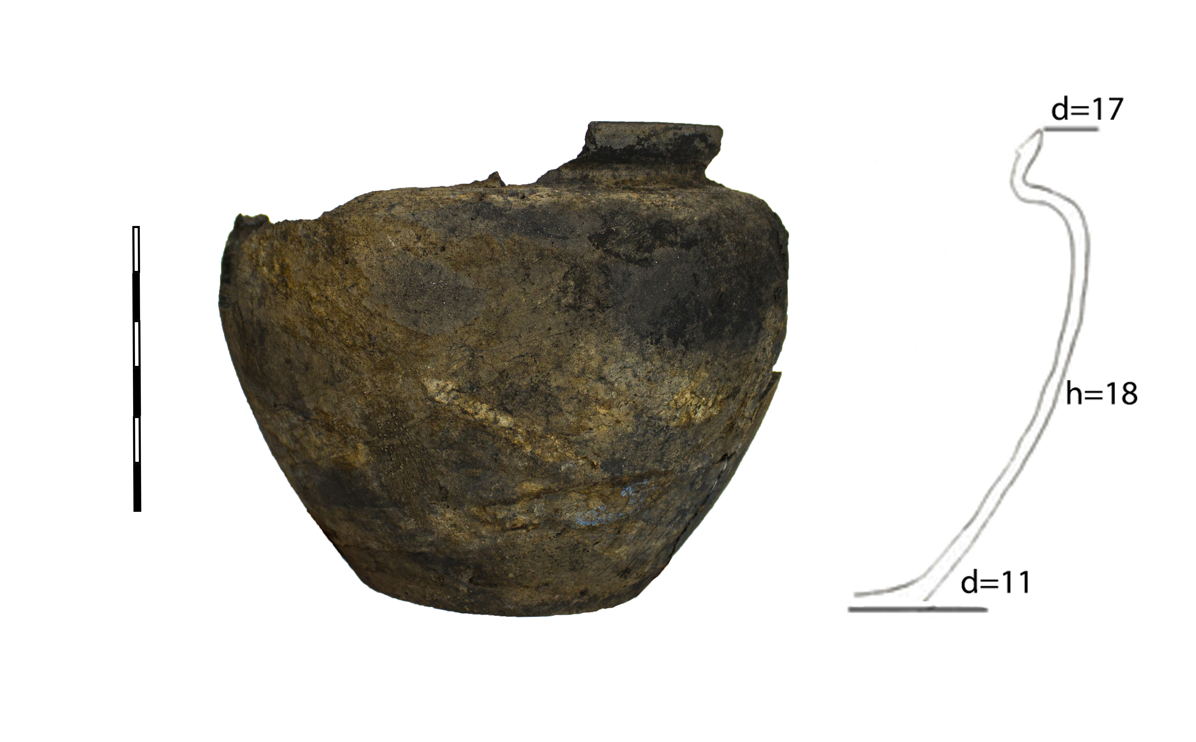 Горшок красноглиняный. Глина с примесью средней дресвы, дно с подсыпкой мелкого песка. Судя по наличию нагара, использовался в качестве кухонной посуды.