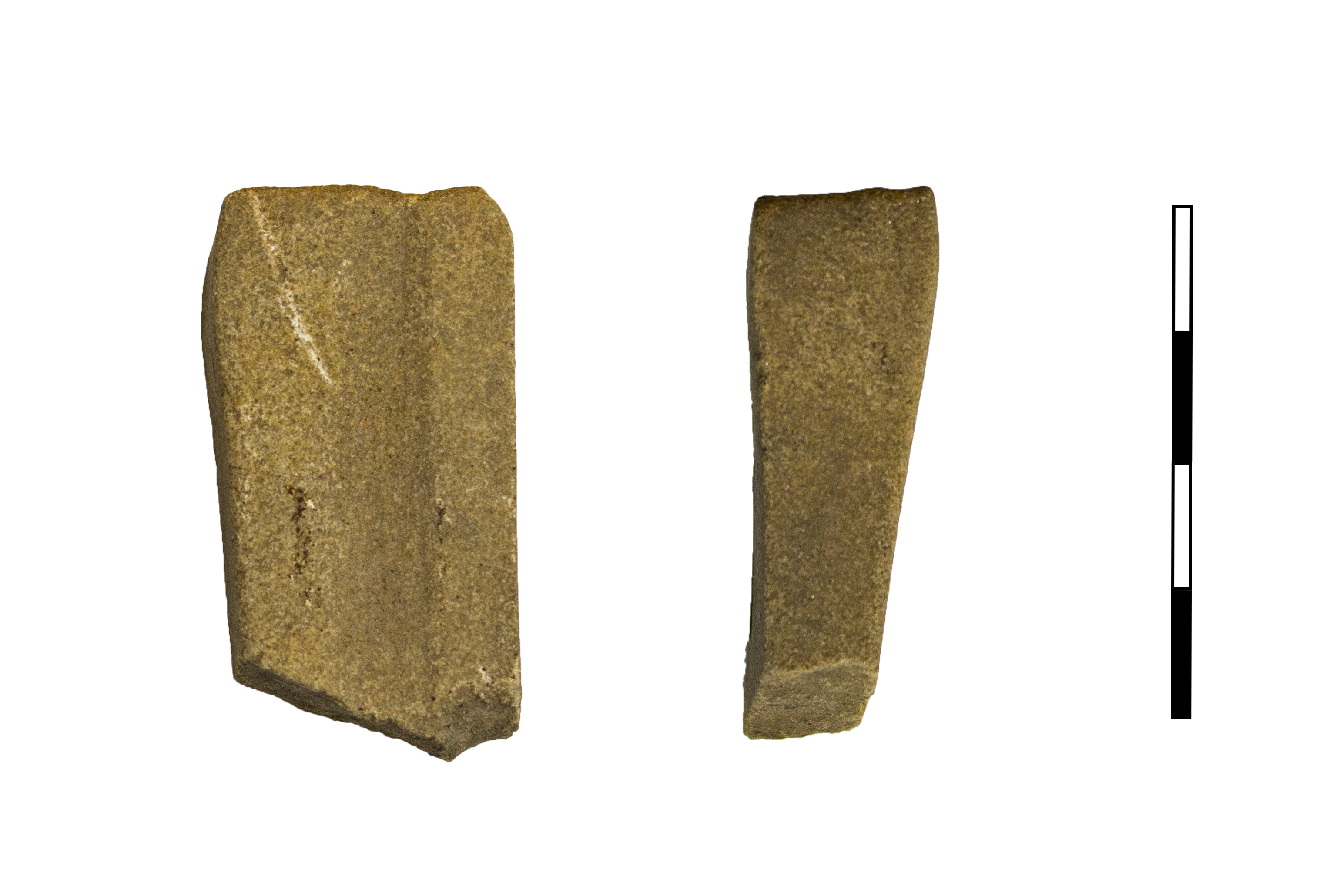 Точильный камень (оселок) из песчаника прямоугольного сечения. Эта осадочная горная порода состоит из кварца, полевых шпатов и слюды. Песчаник для точильных камней часто подбирали на берегах рек. По этой причине такие оселки называли также «водными камнями».