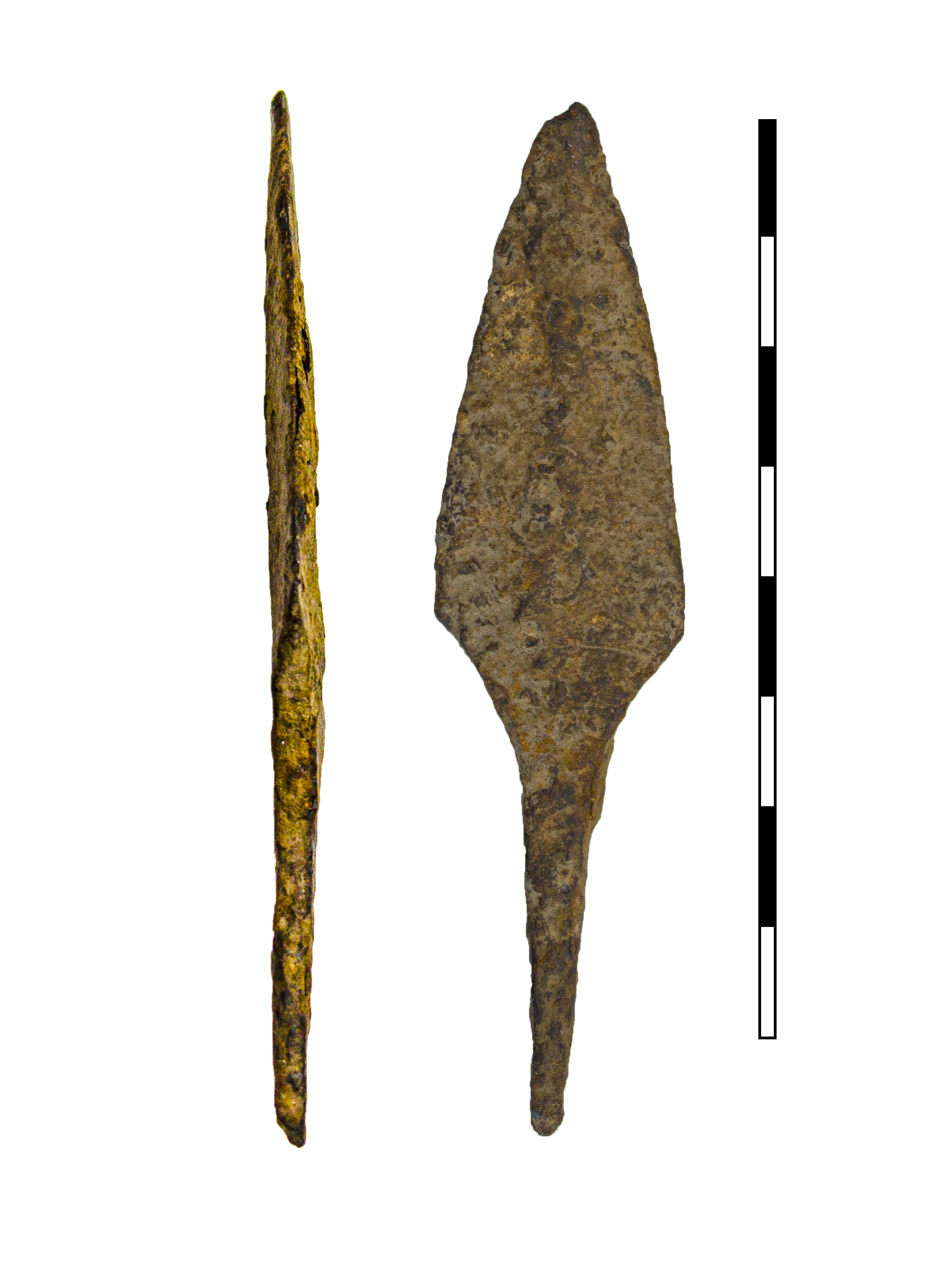 Плоский, традиционной для Древней Руси, наконечник ромбовидной формы. По классификации А.Ф. Медведева – тип 46 («новгородский тип»).