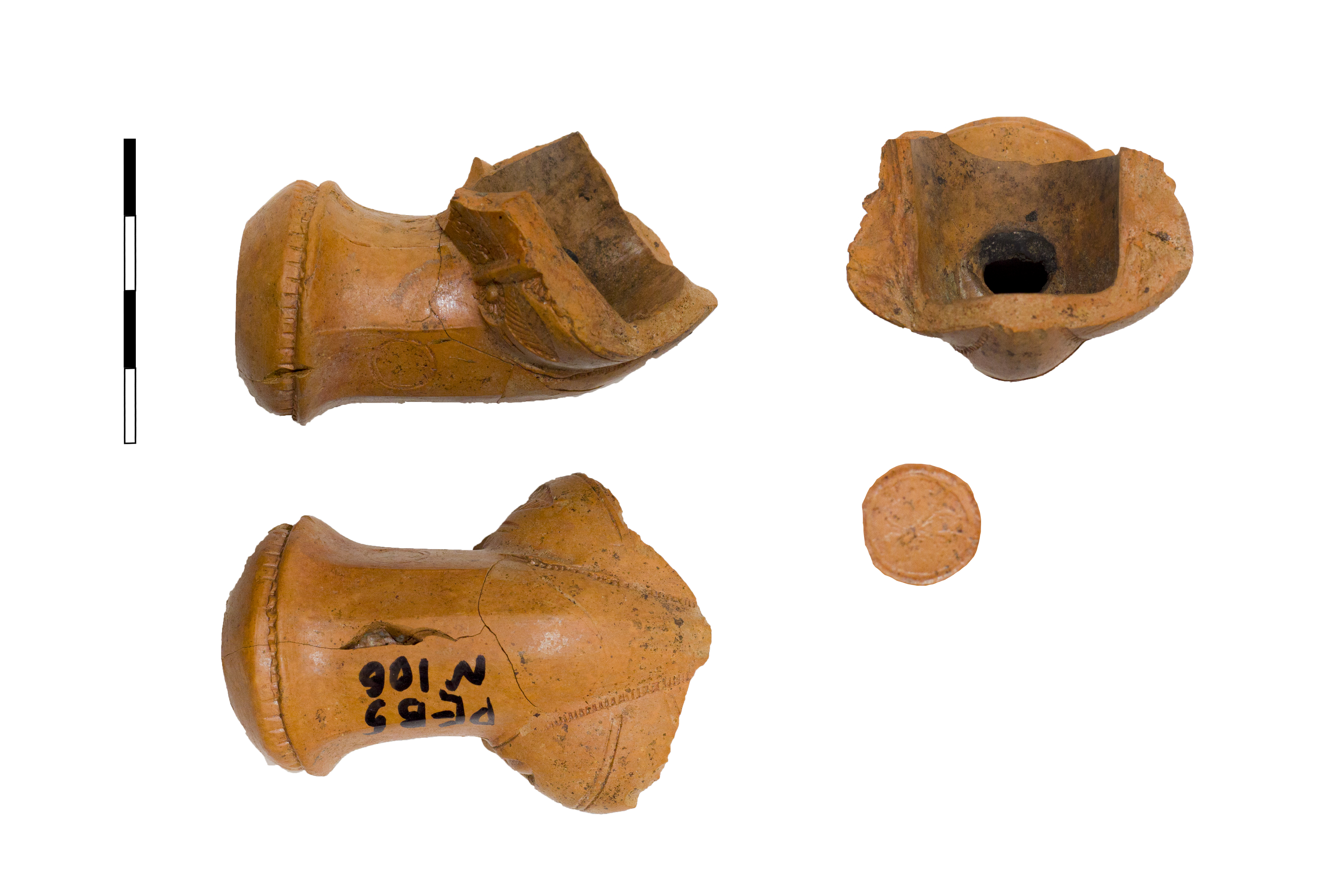 Трубка курительная красноглиняная с клеймом, фасон «тахта- чубук»
