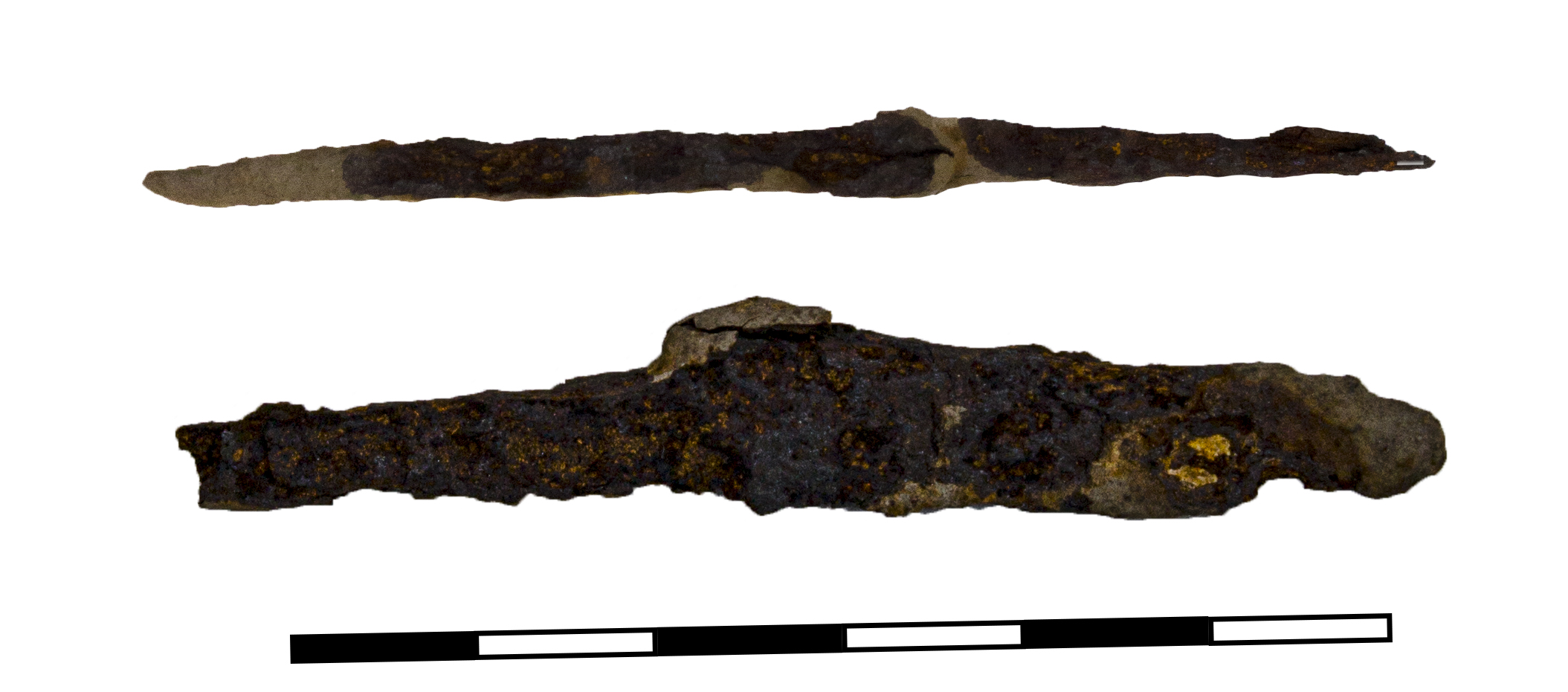 Нож универсальный с широким лезвием. По результатам металлографического анализа при изготовлении использована косая боковая наварка.
