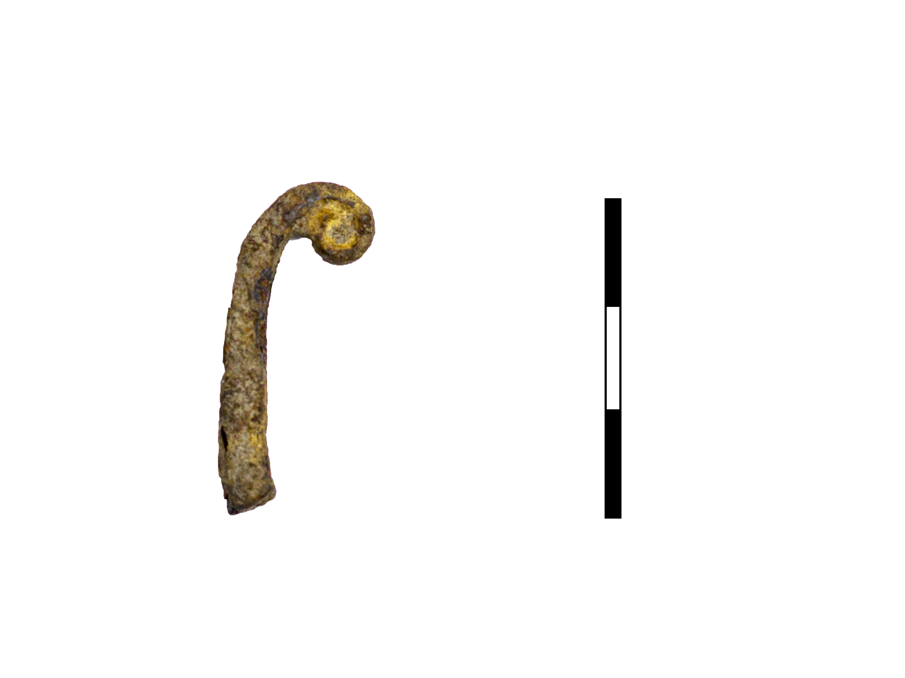 Железный предмет квадратного сечения согнутый. Предназначение неясно, возможно, часть скобы.