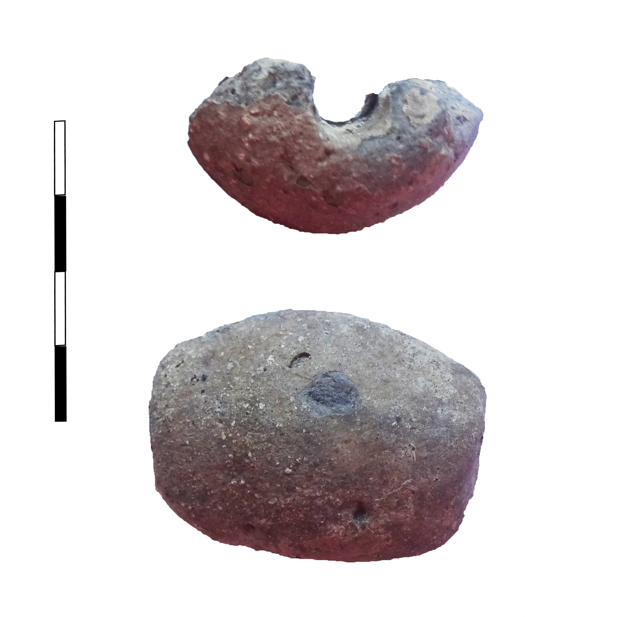 Фрагмент керамического грузила бочонкообразной формы от рыболовной сети.