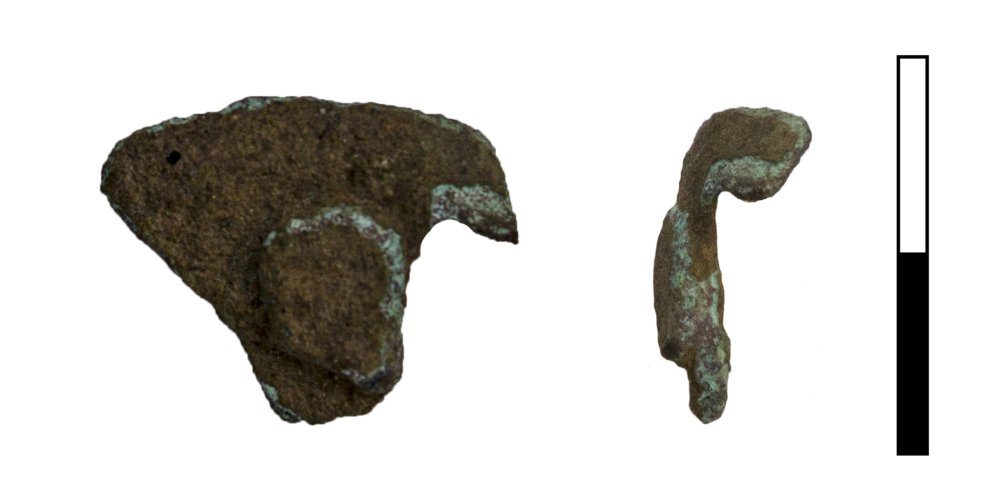 Медная заклепка округлой формы. Возможно, использовалась при оковке сундука.