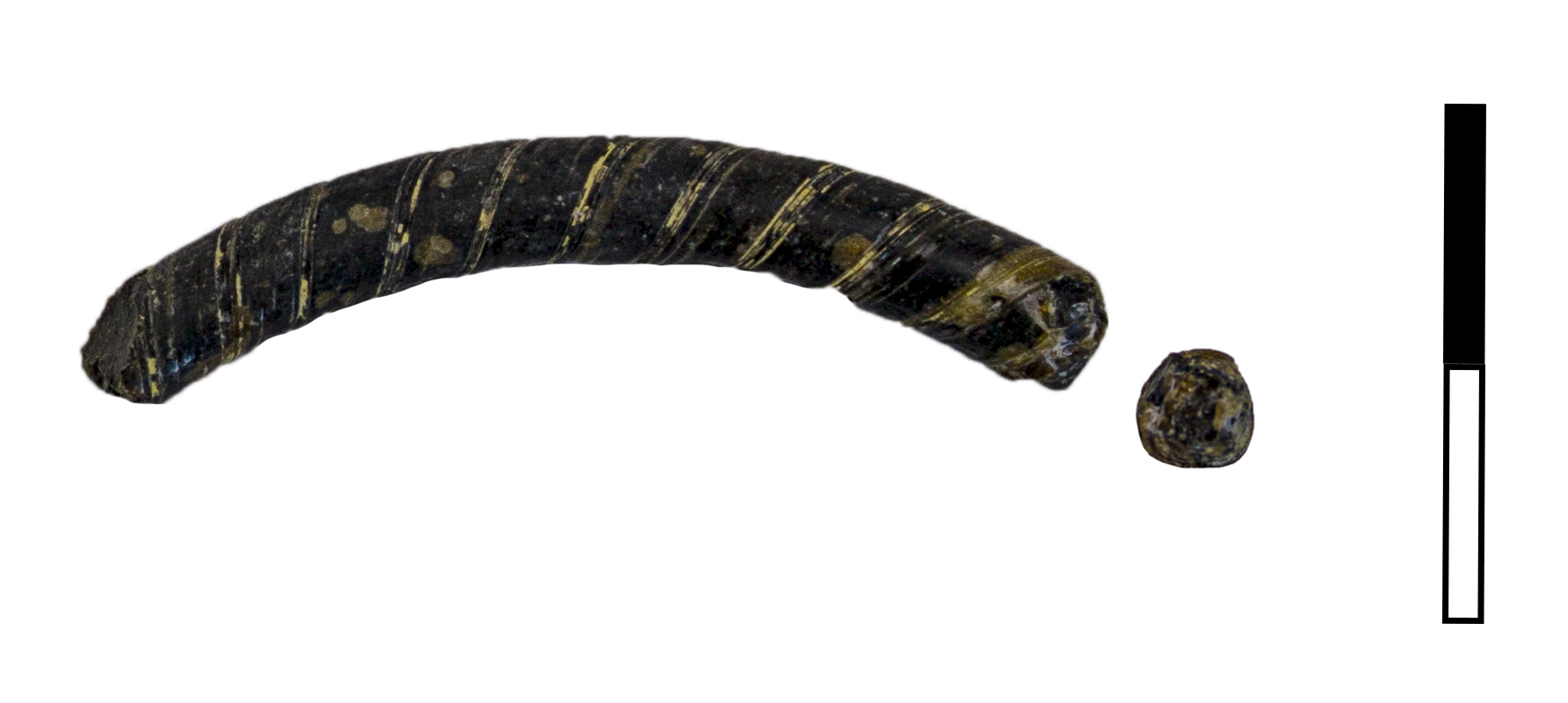 Браслет крученый ребристый из стекла ярко-голубого цвета. Сечение в форме розетки. Диаметр обруча 6,3 см. Изготовлен вытягиванием дрота с одновременным кручением и дальнейшим формованием в кольцо. Изготовлен вытягиванием дрота с одновременным кручением и дальнейшим формованием в кольцо. Поверхность патинирована.