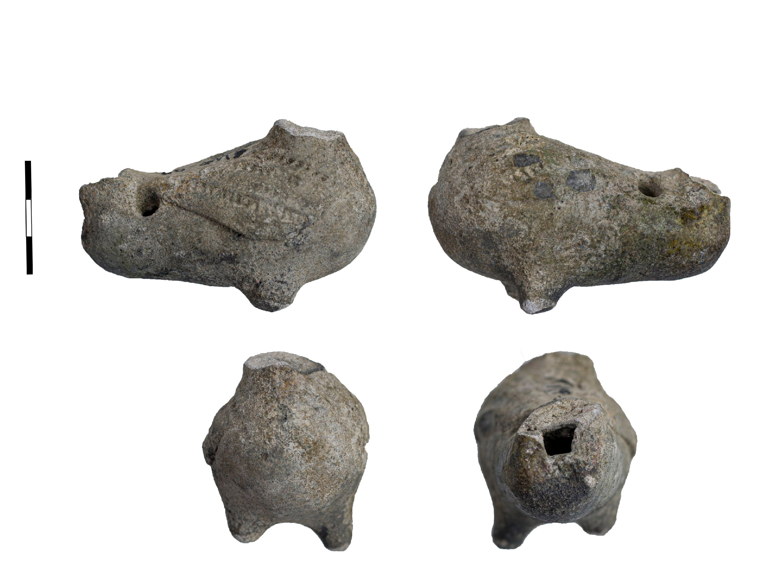 Белоглиняная поливная уточка-свистулька. Голова и хвост отсутствуют. Полива светло-зеленого цвета, пережженная. Возможно, первоначальная полива была с зелено-коричневой мраморовидной росписью.