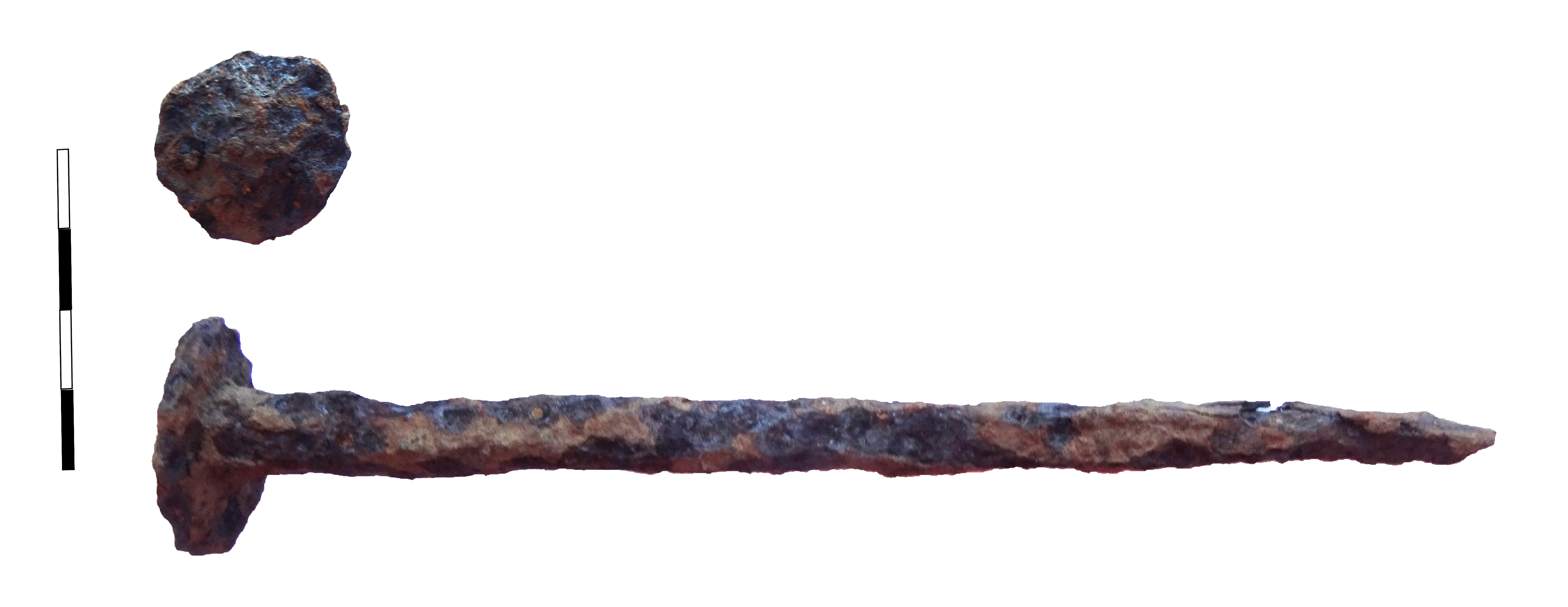 Гвоздь с округлой шляпкой и сечением квадратной формы.