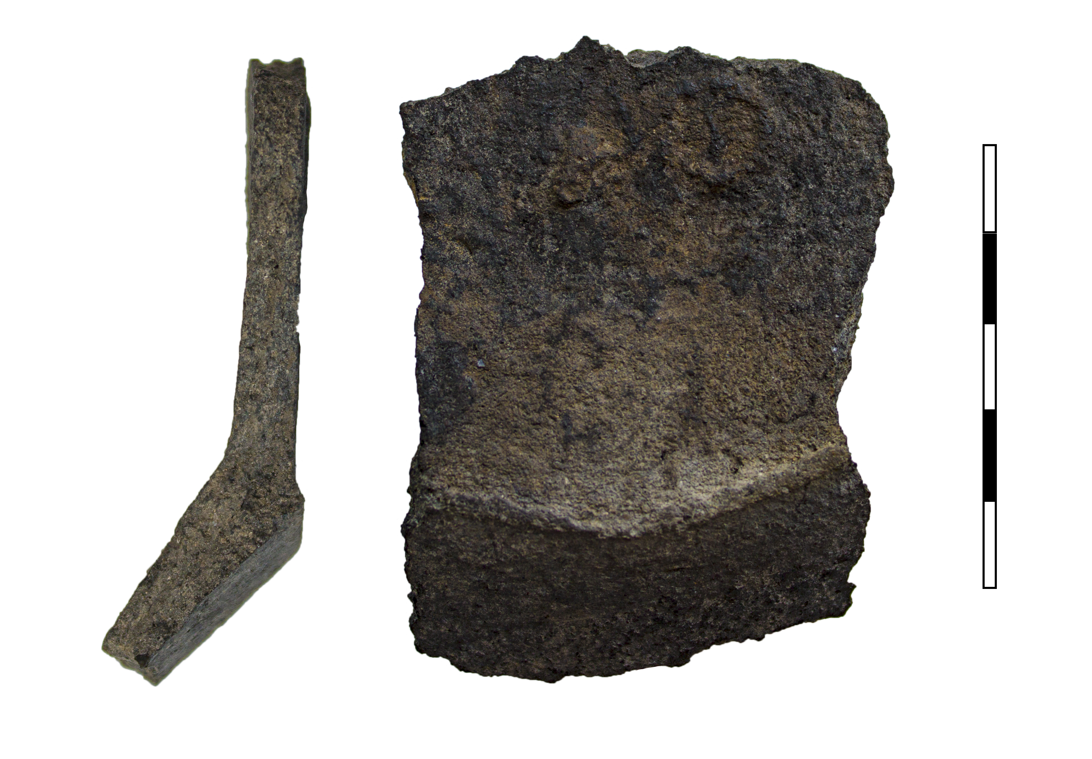Клеймо в виде знака рюриковичей на донце древнерусского кругового сосуда. В составе примесь песка. Донце с подсыпкой золой.