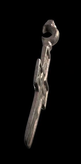 Крест медный, прямоугольноконечный. На лицевой стороне изображен восьмиконечный Голгофский крест с орудиями Страстей Христовых, на оборотной – плохо читаемый текст. Ушко на обортной стороне имеет разрыв, образовавшийся в результате трения, такое случается, если крест носится поверх одежды. Вероятно, именно поэтому крест и был потерян. Крест является типичным для своего времени. Его обнаружение не средневековом селище указывает, скорее всего, на сельскохозяйственное использование этих земель в XVIII-XIX вв.
