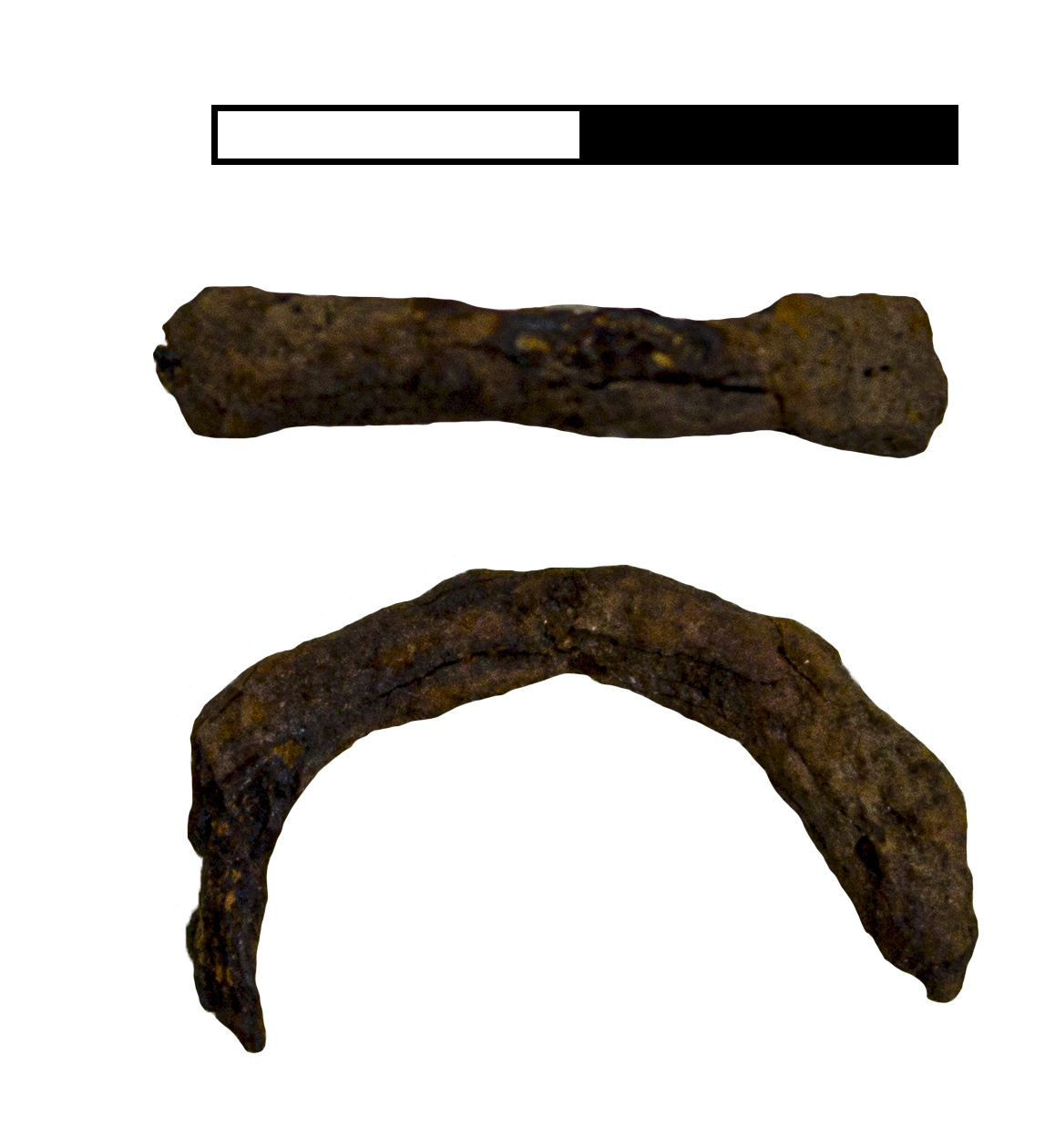 Фрагмент сильно корродированного крюка железного. Возможно, рыболовный крючок.