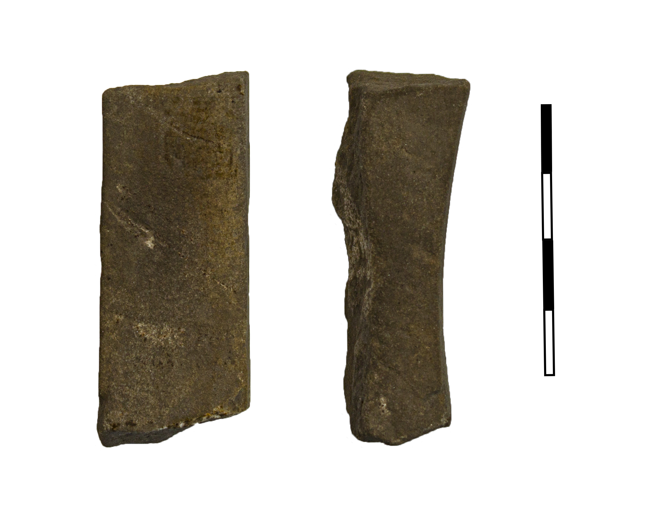 Точильный камень (оселок) из песчаника прямоугольного сечения. Эта осадочная горная порода состоит из кварца, полевых шпатов и слюды. Песчаник для точильных камней часто подбирали на берегах рек. По этой причине такие оселки называли также «водными камнями».